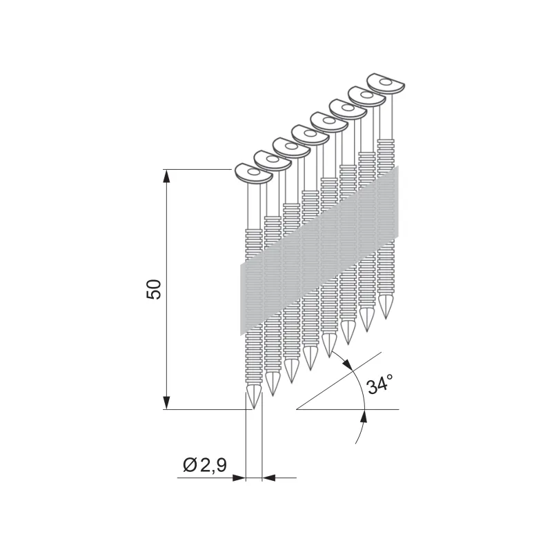 Konvexe Schussnägel für eine Gaspistole für 90-mm-Nagel mit Bezeichnung KMR D34/90-G641E.