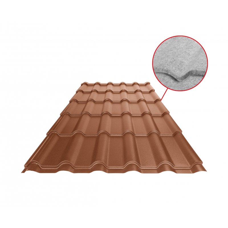The roofing UNI 2 SQ contains an anti-condensation and anti-noise felt on the bottom side, which increases comfort. It dampens environmental noise and prevents condensing water from spreading to the roof surface.