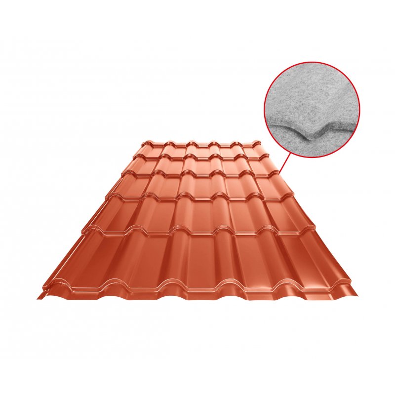 The roofing UNI 2 SQ contains an anti-condensation and anti-noise felt on the bottom side, which increases comfort. It dampens environmental noise and prevents condensing water from spreading to the roof surface.