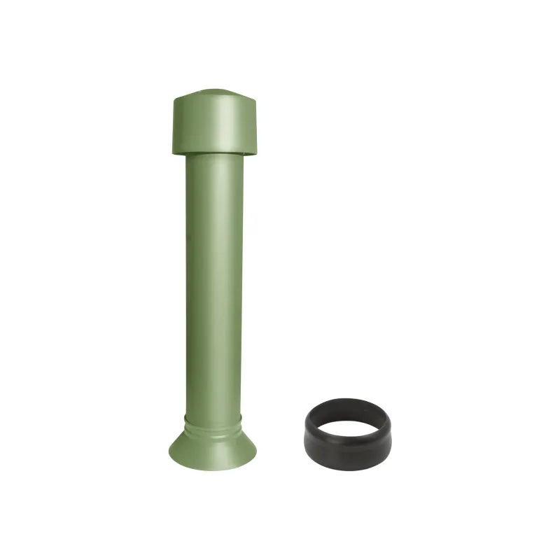 Connection to standard PVC pipes. EPDM gasket in black version for sealing the chimney fixed to the base.