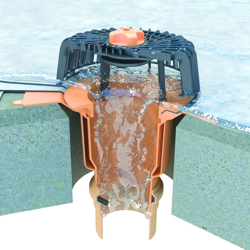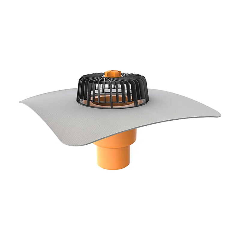 TOPWET tetőösszefolyó beépített PVC alapú vízszigetelő fóliából készült gallérral, függőleges kialakítás, hőszigetelt – dupla falú, védőkosárral.