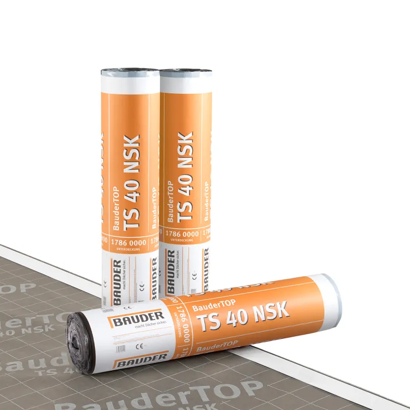 Difúzne uzavretý asfaltový podkladový pás a poistná hydroizolácia (PHI) so samolepiacim pozdĺžnym spojom, montáž na drevené debnenie resp. kompozitné drevité dosky.