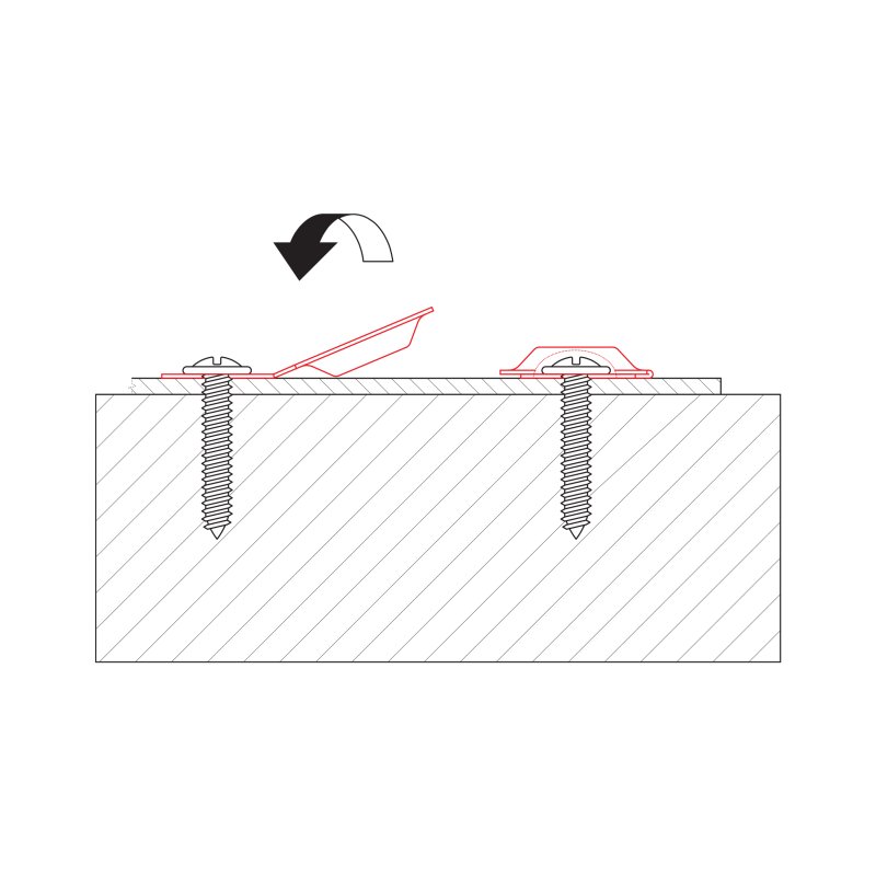 Uchytenie krytky skrutkou/klincom cez otvor podložky a následné prekrytie zahnutím.