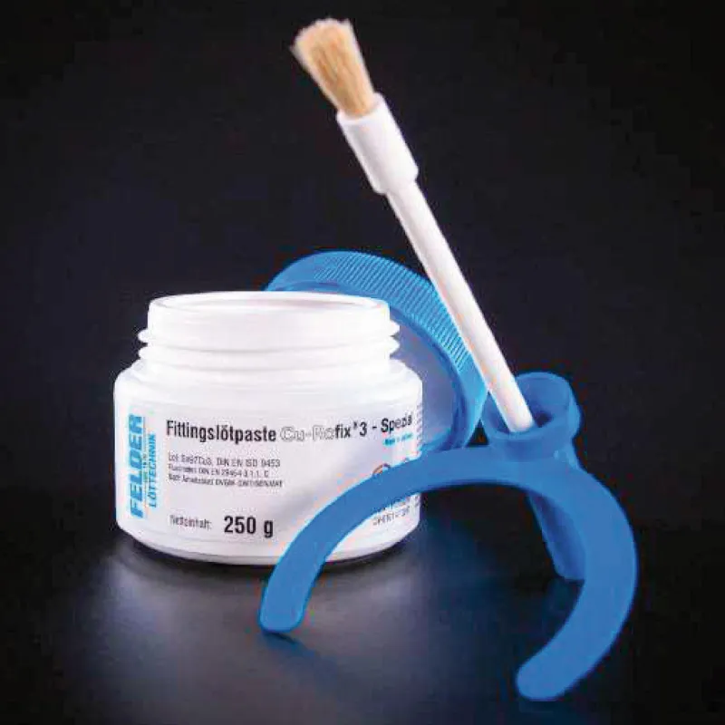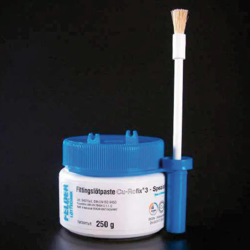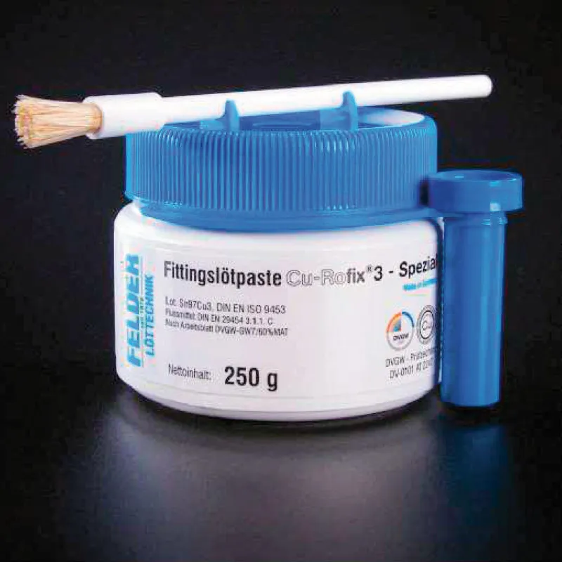 Hotová mäkká letovacia pasta na predbežné a mäkké letovanie medených produktov „Cu-Rotin®3“. Na báze chloridu zinočnatého a chloridu amónneho v organickom zložení.