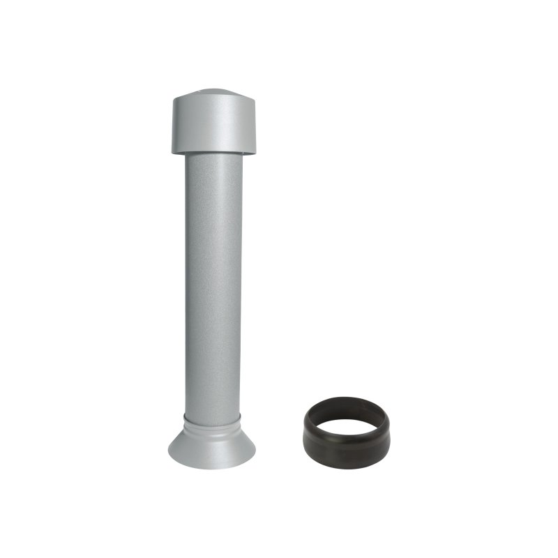 Pripojenie na štandardné PVC rúry. EPDM tesnenie v čiernom prevedení na utesnenie komína uchyteného v podstavci.