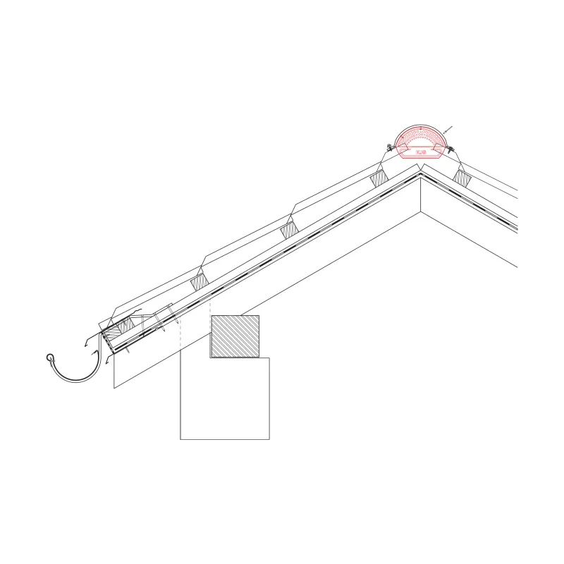 Na ukončenie hrebenáča na čele strechy slúži nami vyrábané ukončenie. Uzatvára konce hrebenáča a súčasne odvetráva priestor pod ním.