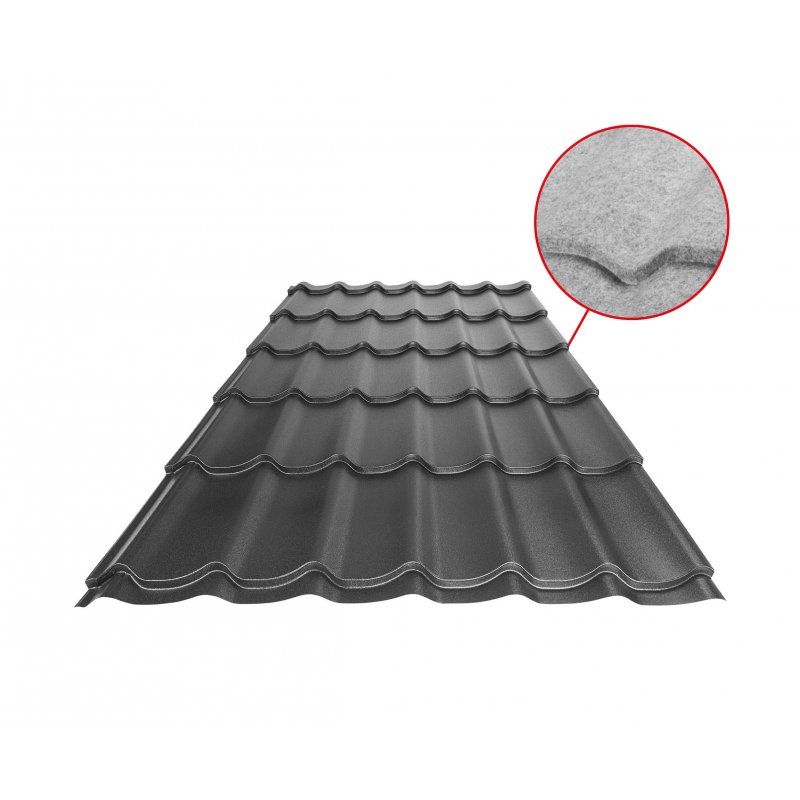 Krytina UNI 1 SQ obsahuje antikondenzačný a protihlukový filc zo spodnej strany, ktorý zvyšuje komfort. Tlmí hluk prostredia a zabraňuje kondenzujúcej vode jej šíreniu sa do strešnej plochy.
