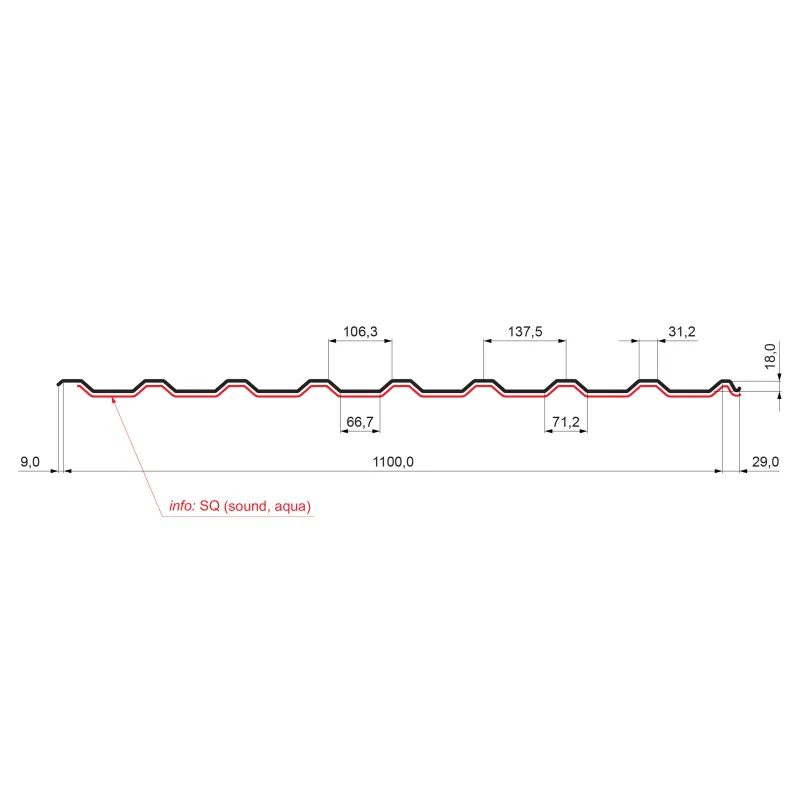 Trapéz strešný s prelisom TR 18A SQ (sound – aqua)