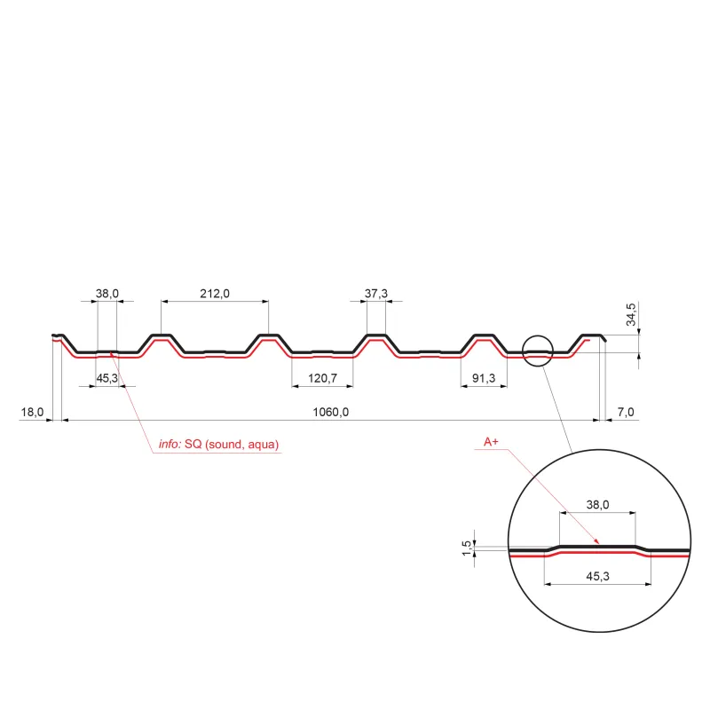 A+ SQ = A/strešný, +/prelis, SQ (antikondenzačný a protihlukový filc)