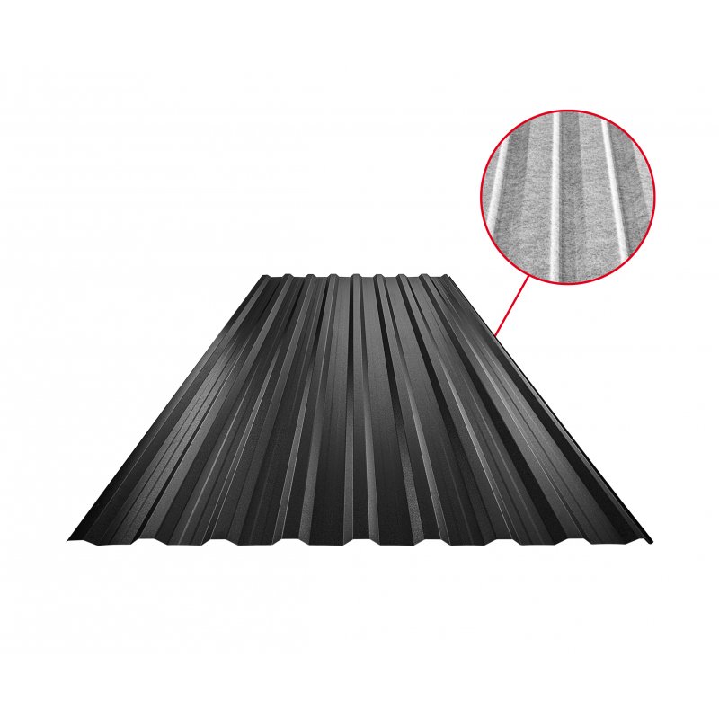 Obsahuje SQ antikondenzačný a protihlukový filc zo spodnej strany, ktorý zvyšuje komfort. Tlmí hluk prostredia a zabraňuje kondenzujúcej vode jej šíreniu sa do strešnej plochy.