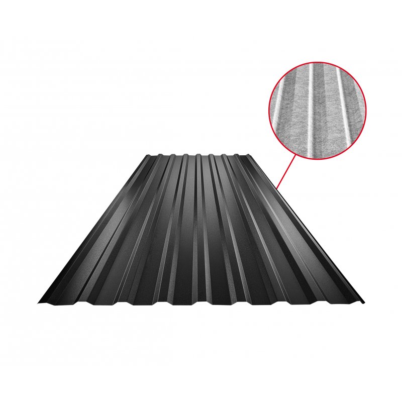 Obsahuje SQ antikondenzačný a protihlukový filc zo spodnej strany, ktorý zvyšuje komfort. Tlmí hluk prostredia a zabraňuje kondenzujúcej vode jej šíreniu sa do strešnej plochy.