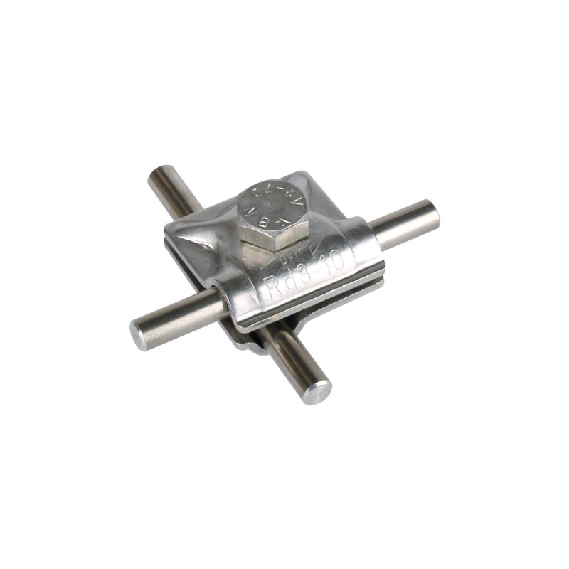 Viacúčelová nerezová svorka na univerzálne použitie ako krížová, "T" alebo paralelná (dvojdielna) pre vedenie o Ø 8 – Ø 10 mm.