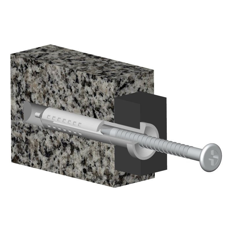 Забивной дюбель (Don Quichotte) в сплошные стеновые строительные материалы (полноценный кирпич, бетон, камень) с потайной головкой и коническим буртиком.