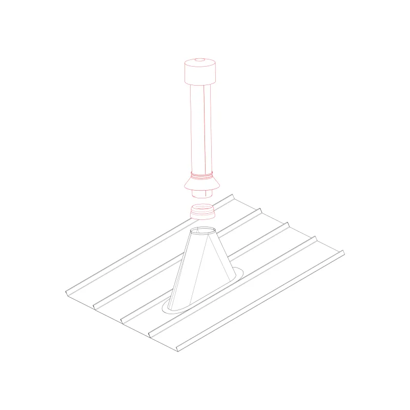 Подключение к стандартным трубам ПВХ. Уплотнение EPDM черного цвета для герметизации трубы дымохода, закрепленного в основании.