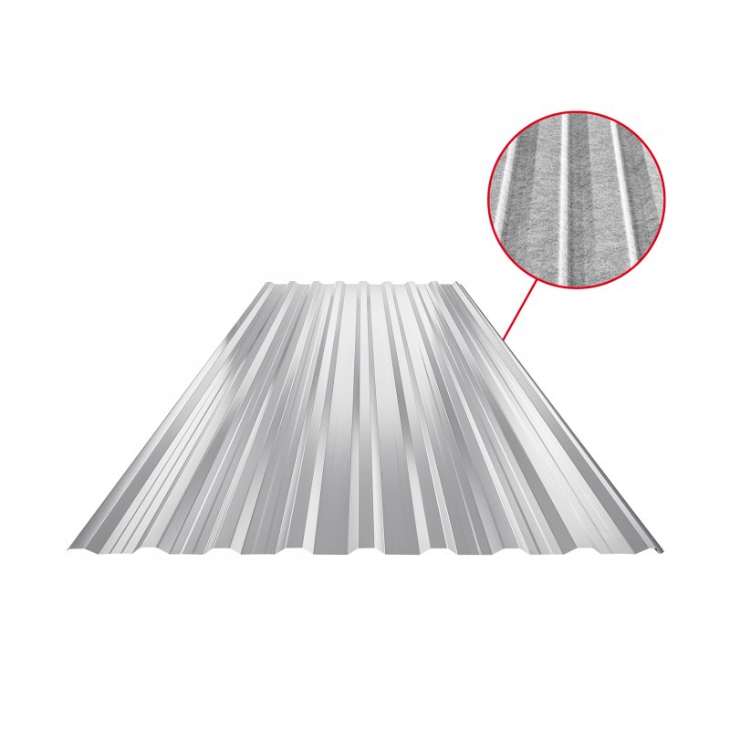 Содержит антиконденсационный и противошумный войлок SQ на нижней стороне, повышающий комфорт. Он поглощает окружающий шум и предотвращает распространение конденсирующейся воды на поверхность крыши.