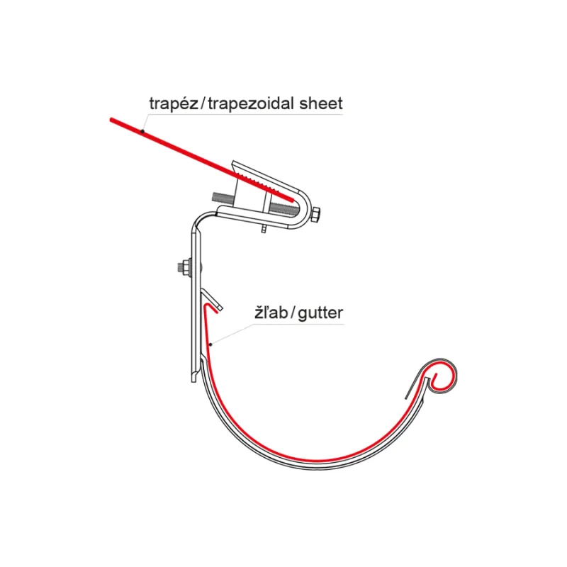 Совместимость с трапециевидным профилем и желобом – специальная форма и конструкция крюка адаптированы для соответствия трапециевидному профилю, удерживая при этом желоб.