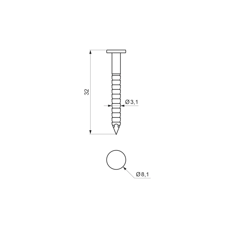 Pnevmatski konveks žeblji za žebljalno pištolo brez plina