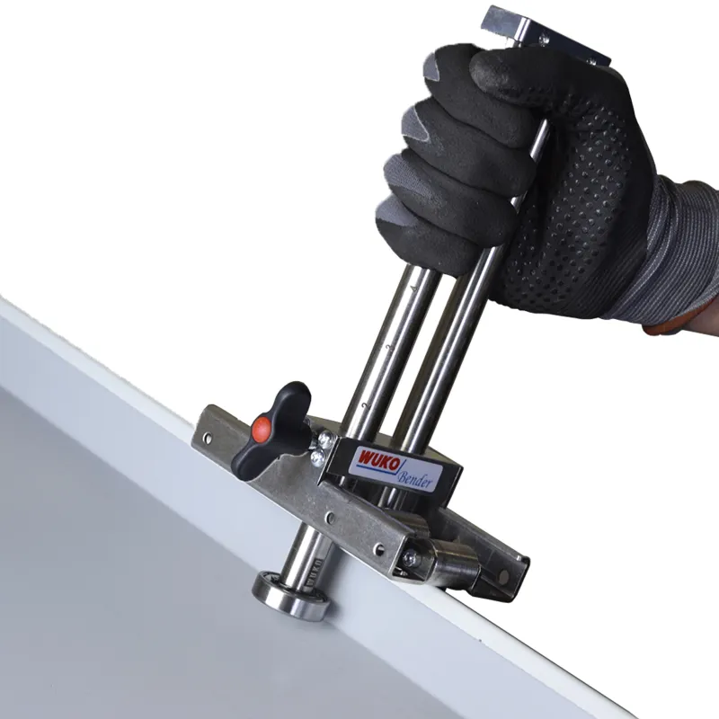 WUKO Uni Bender 2204 univerzalen ročni upogibnik opremljen s 4 zaustavitvenimi valji za upogibanje pločevine od 6 do 200 mm. Namenjen je za upogibanje do 90° in za debelino pločevine do 0,80 mm.