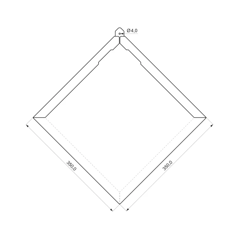 KJG Strešni romb velikosti 350 × 350 mm je sodobna in elegantna rešitev za poševne strehe z naklonom od 12°. Streha je zaradi pravilne štirikotne oblike estetsko in geometrijsko uravnotežena – idealna izbira za tradicionalne in sodobne objekte.