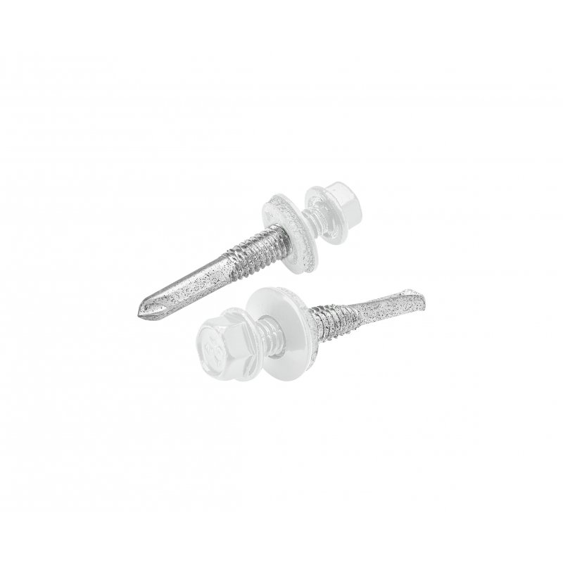 Samovrezni pocinkani vijak za pritrditev profiliranih konstrukcijskih jeklenih pločevin na tankoslojne toplo valjane jeklene konstrukcije.