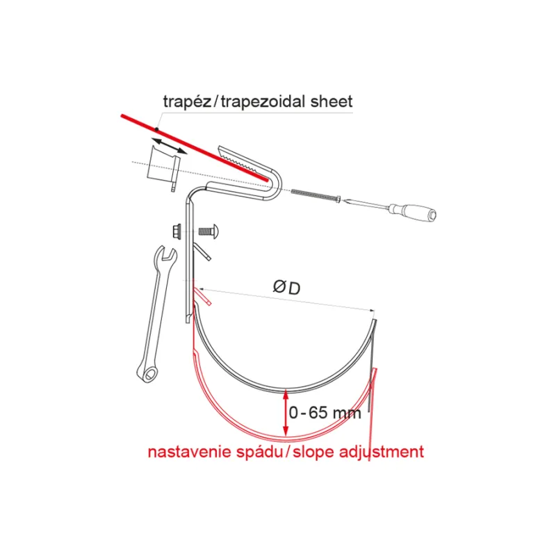Ta posebni strešna kljuka je namenjen za pritrditev strešnih žlebov neposredno na trapezne strešne profile. Kljuka omogoča stabilno in varno pritrditev žleba, brez demontaže večjega dela strešne kritine. Idealna rešitev za prenove ali strehe s pločevinasto kritino.